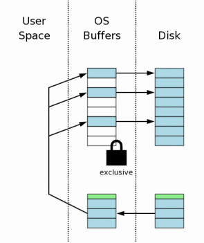 Once an exclusive lock is held, we know that no other processes are reading from the database file and it is safe to write changes into the database file. Usually those changes only go as far as the operating systems disk cache and do not make it all the way to mass storage.